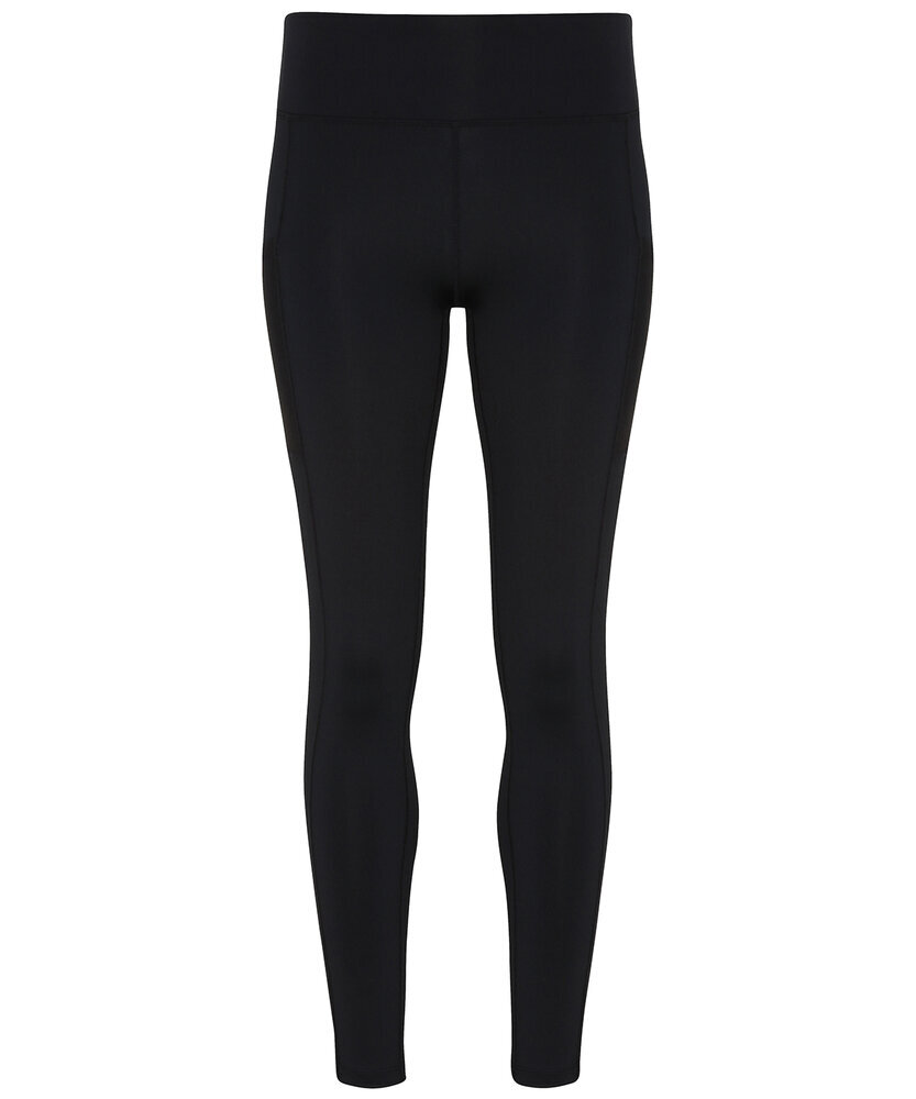 Full-length leggings. Soft stretch fabric. Elasticated waistband. Pocket inside waistband useful for storing locker keys. Compression fit. 2 mesh phone pockets, one on each side of the leg. We recommend using block out vinyl and inks.Product contains no branded neck or waist label. Removable Kimble or looped garment tags. Inner seam label holds important product information on one label with a second label containing brand information which can be cut-away.