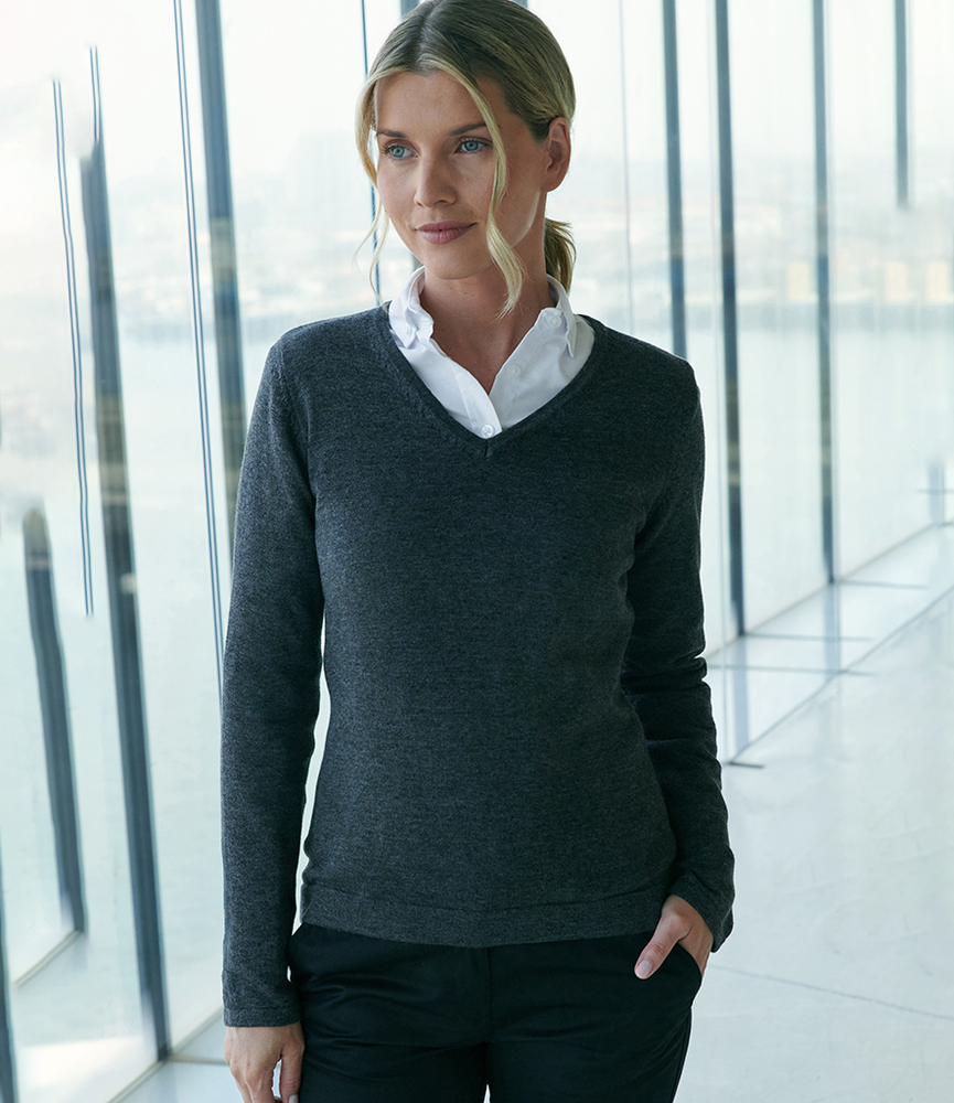 Henbury Ladies Lightweight Cotton Acrylic V Neck Sweater