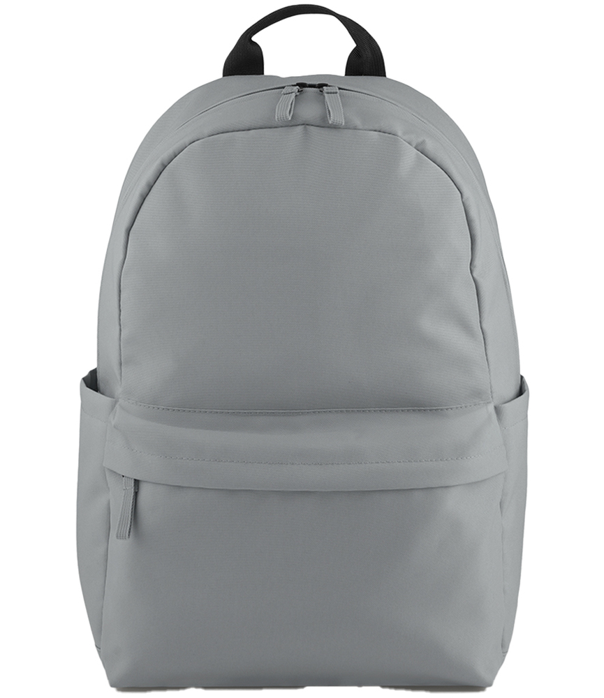 100% recycled 600D polyester. PVC free.Recycled 210D polyester lining.Grab handle.Padded adjustable shoulder straps.Padded back panel.Main zip compartment.Front zip pocket.Rear zip pocket.Internal slip pocket.Tear out label.Capacity 20 litres.